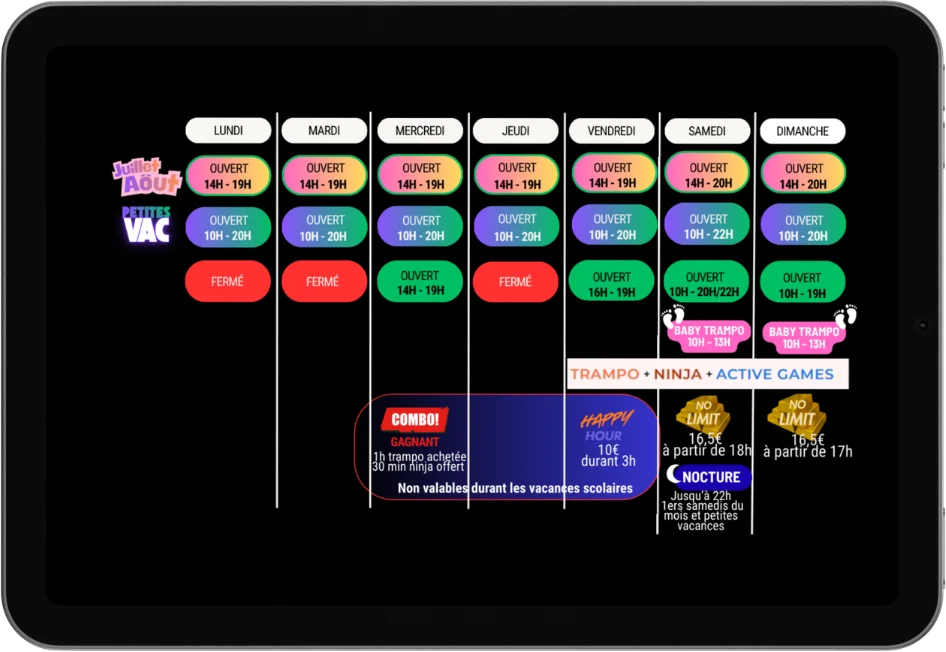 - À partir de 4 ans (en dessous : session Baby Trampo)